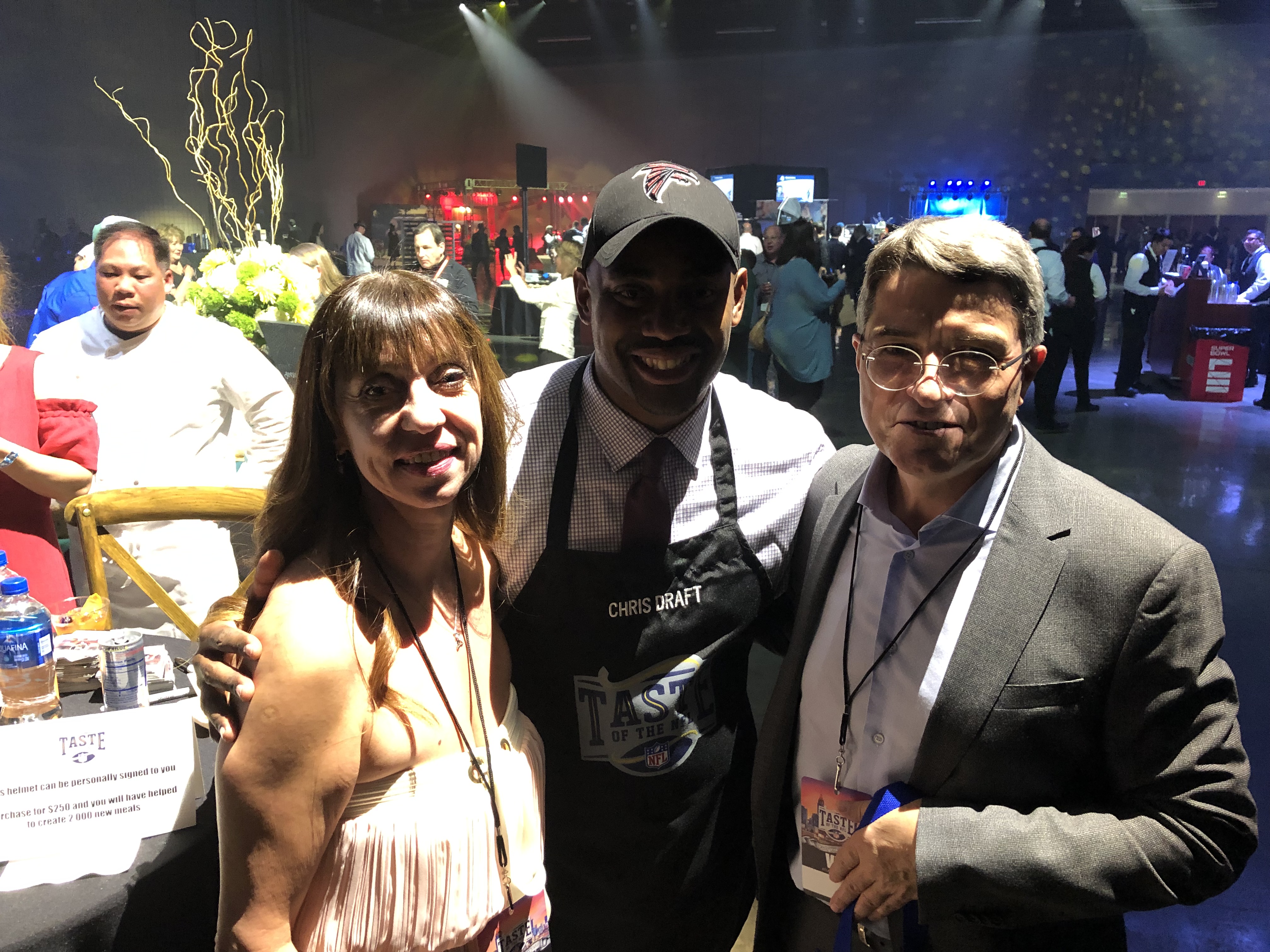 American football is not just a very dramatic sport. It is also about giving back to the community. Taste of the NFL charity evening, held in Cobb Galleria Center, brought together master chiefs and NFL legends from all 32 NFL cities with one purpose to donate funds to the food banks around USA. Among the legends were former Falcon Chris Draft and former Patriot Christian Fauria who showed me one of his two Champions rings.
