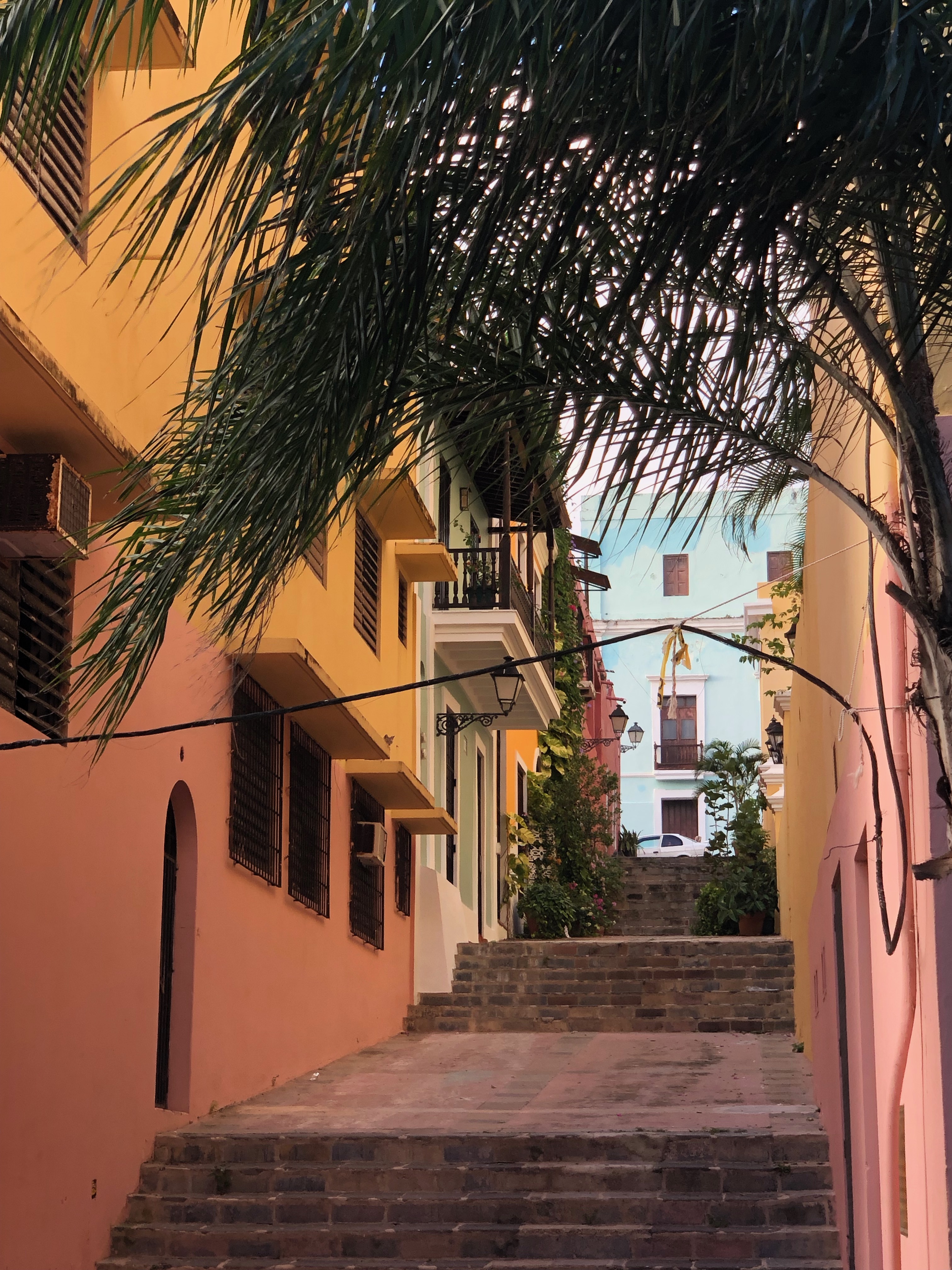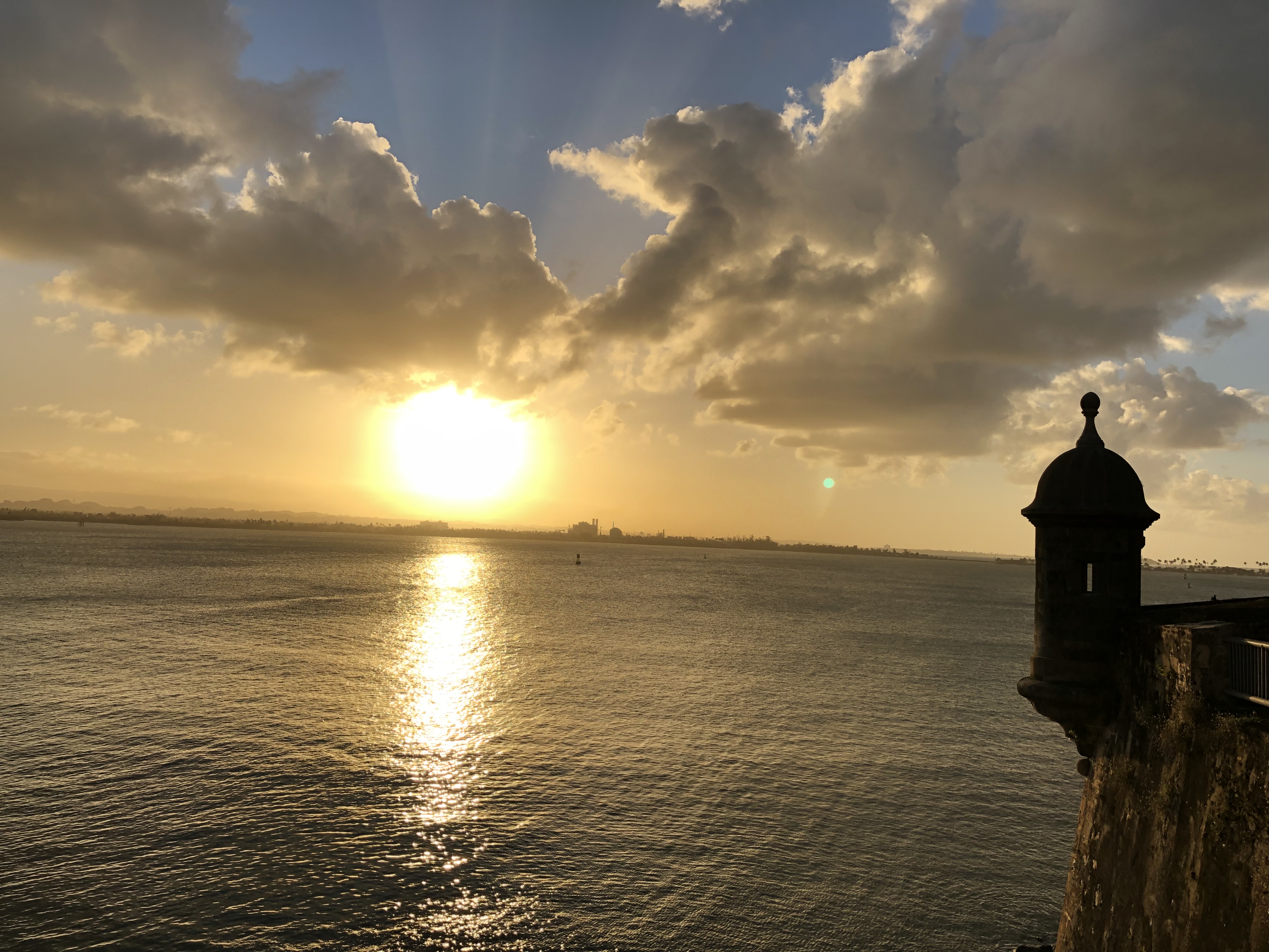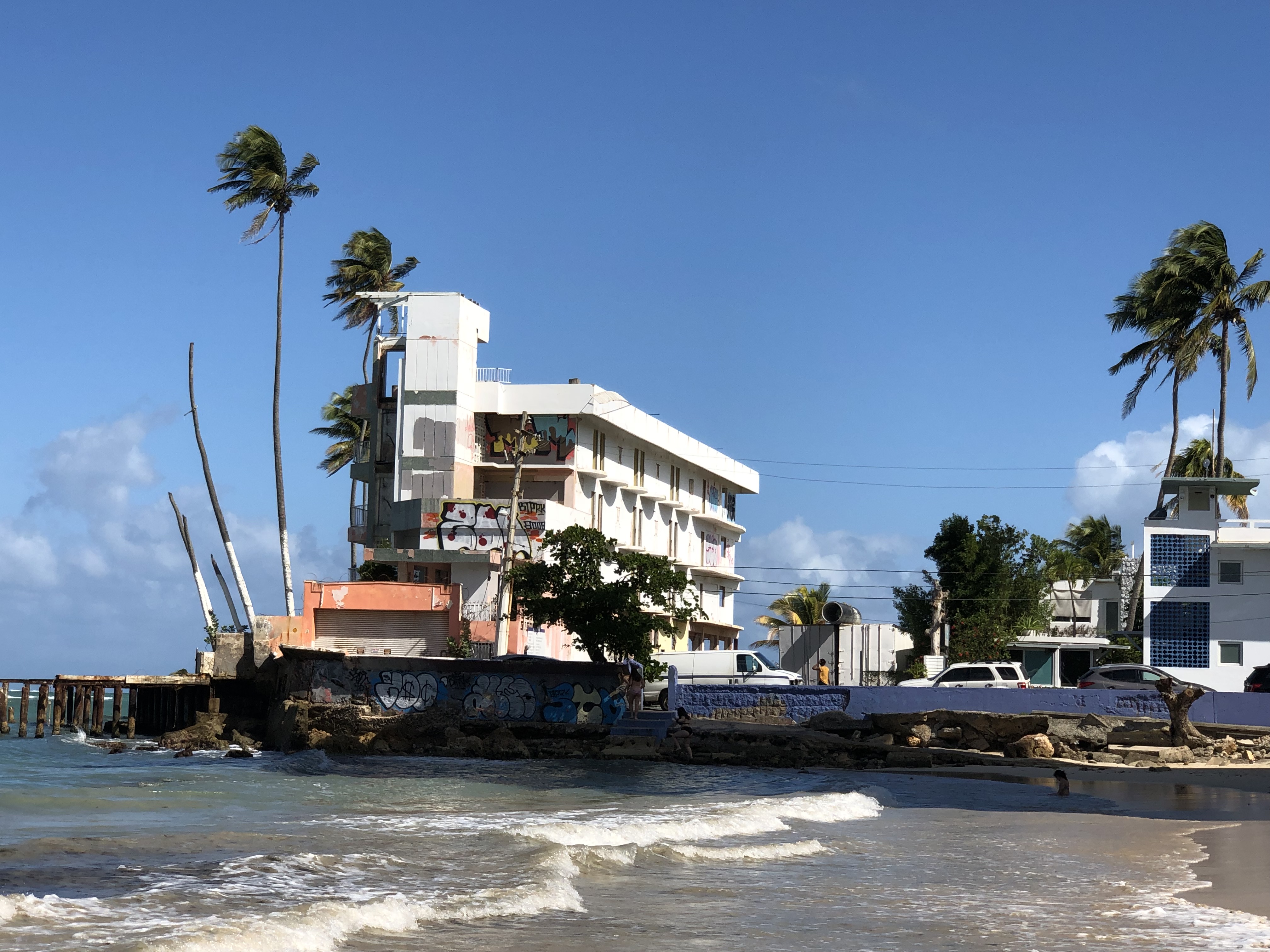 San Juan is the capital of Puerto Rico. Its mild tropic climate makes it a perfect destination during the long and cold American winter. The temperature varies between 80s and 90s and long beautiful Caribbean beaches are full with tourists during the day. Along the coast, the devastation from the hurricane Maria is still visible.