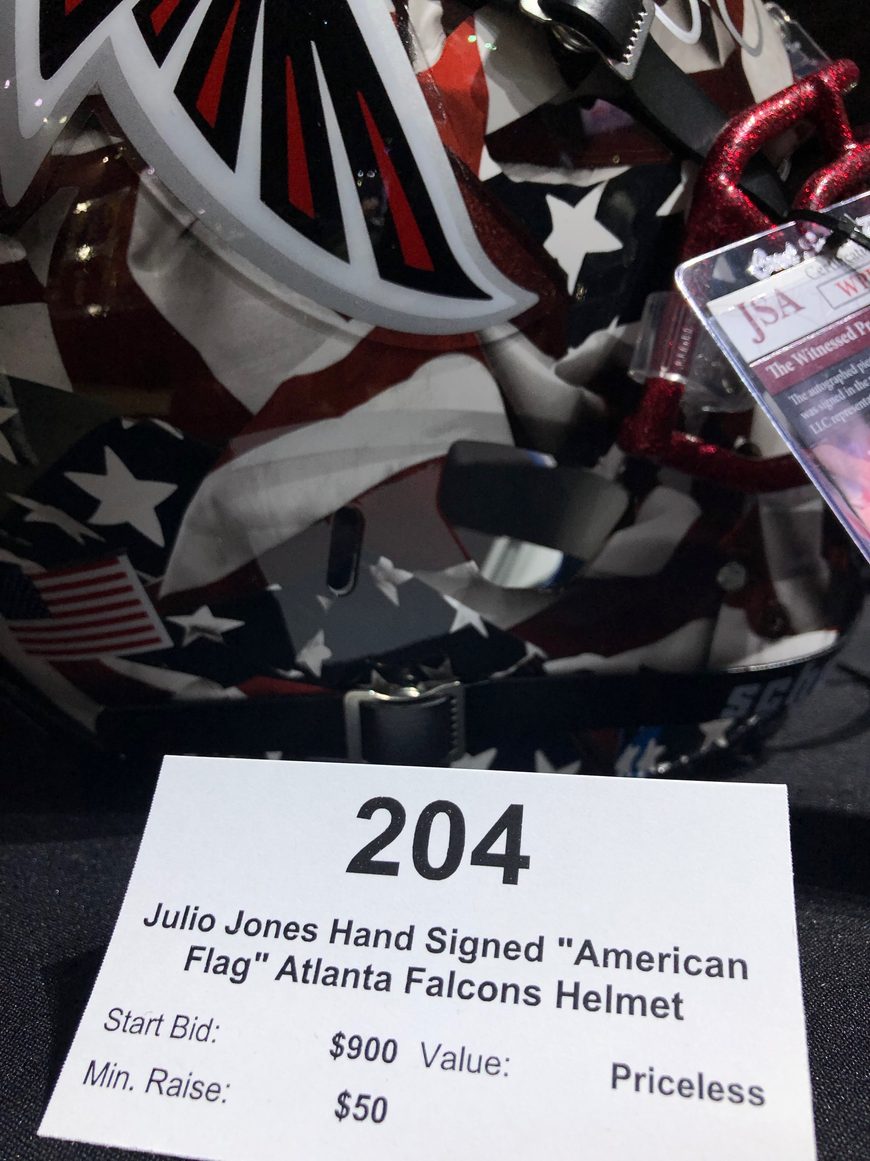 The exhibits of the silent auction included personally signed shirt of Patrick Mahomes, personally signed helmets of Tom Brady and Julio Jones, and many other.